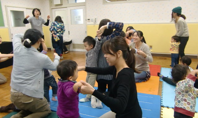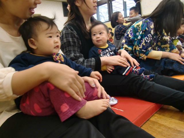 ママのヒザで リズムに合わせて トン! トン! トン !