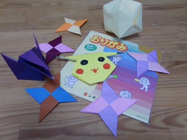 紙ふうせん、しゅりけん、ピカチュウなどそれぞれ好きなものを折りました。