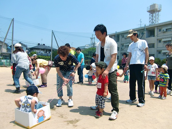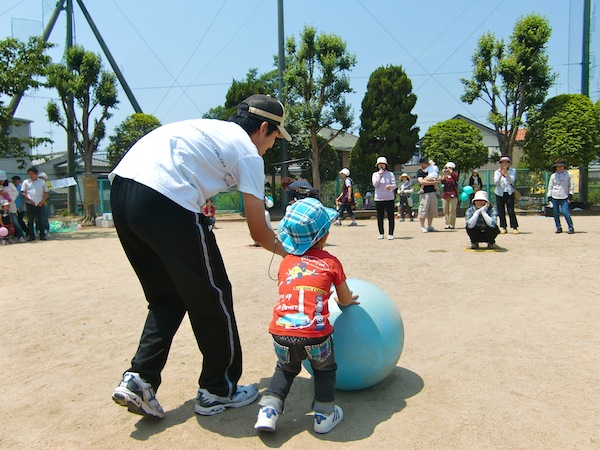 たくさんのパパが参加してくれ、子どもたちと一緒にボール転がしやしっぽ取りで頑張ってくれました。