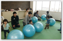 人形劇「ねこのお医者さん」や、ボールや体を使ったワークショップをして、