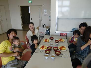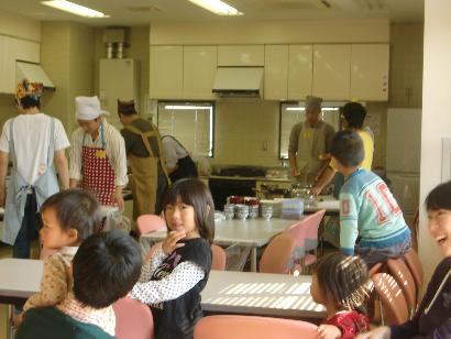 パパがお料理をしている間 ママと子どもたちは 多目的室で、スタッフと一緒に遊んだり、パパたちを見学に行ったりして 待っていました♪