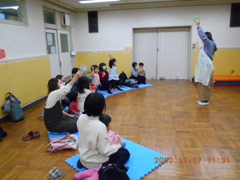 うさぎさんやリスさんが サンタさんからプレゼントをもらっているのをみながら『にんじんもらってるね』など、興味深々で見てくれていましたよ。
