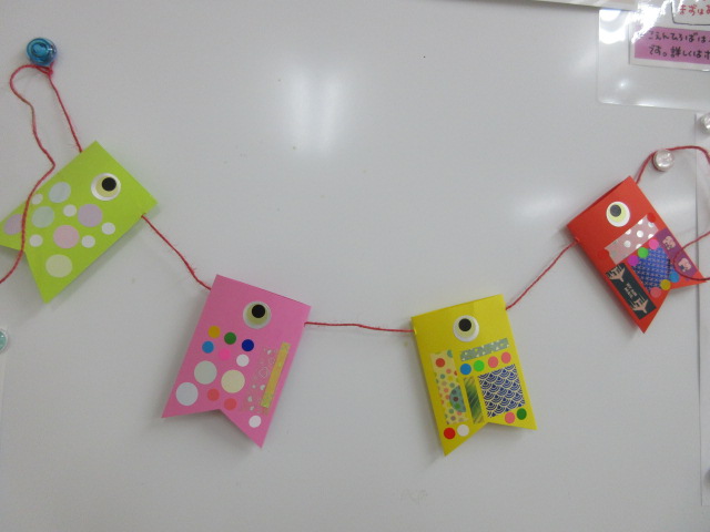 それぞれにみんな個性的なこいのぼりが出来ましたよ。