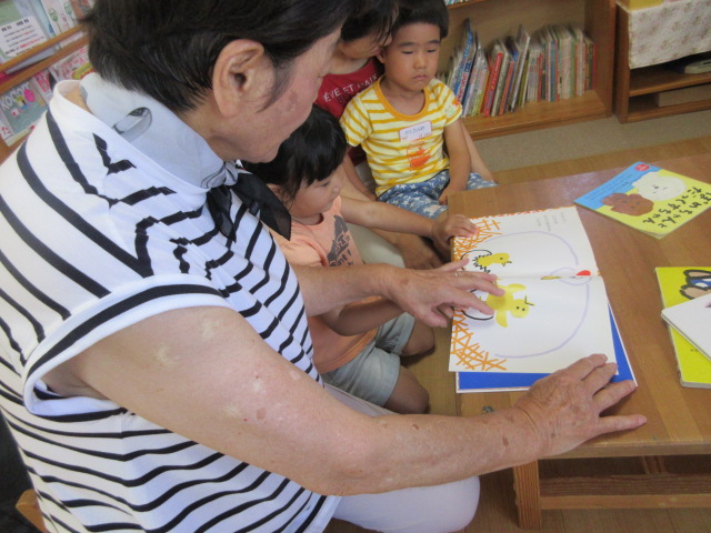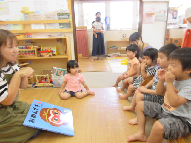 8月5日に地域のボランティアさんが絵本を読みに来て下さいました。