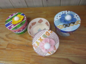 木の箱とマスキングテープを使って「かわいい箱作り」をしました。