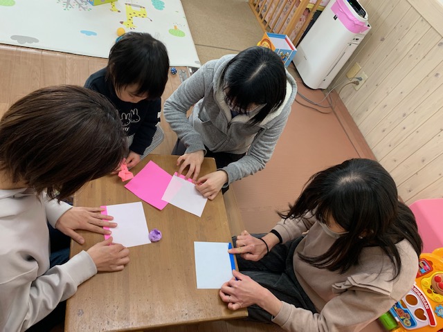お母さんたちは、折り紙レッスン!