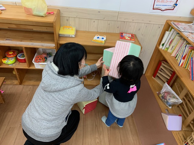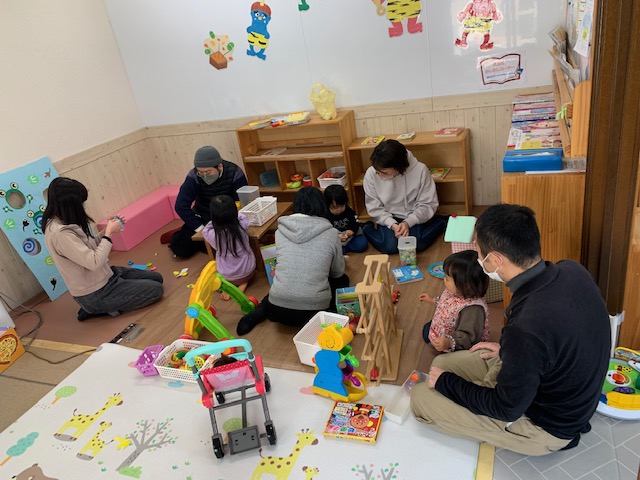 ままごとやソフトブロックを使って遊んだり絵本を読んでもらったり、子どもたちも優しい大学生のお姉さんと遊ぶのは嬉しそうでした。