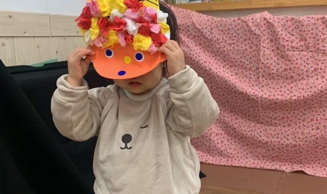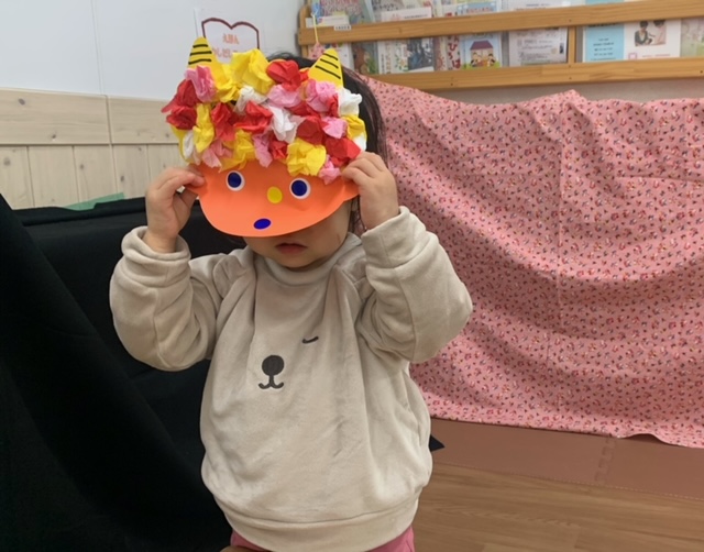 鬼のお面は、○シールで目を貼ってもらいましたが、それぞれ表情豊かな鬼のお面が出来ました。