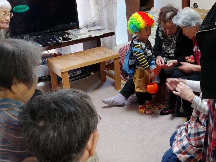 地域のお年寄りの施設『ひなた』では、お部屋に入って一人ずつお話をしながら