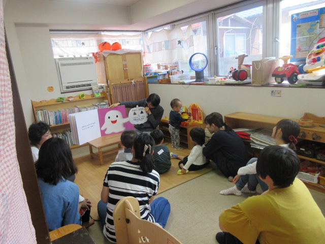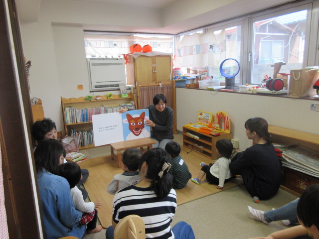 10月 おはなし会 2018年10月24日 koenhiroba 地域の人たちと 0 図書館等で読み聞かせボランティアをされている地域の方に来ていただきました。 大型絵本の迫力にびっくりしている様子でした。ボランティアさんの声と絵本に合わせてお母さんに抱きかかえてもらったりとみんな嬉しそうでした。上記の本を読んでもらいました。 11月は21日に行います。