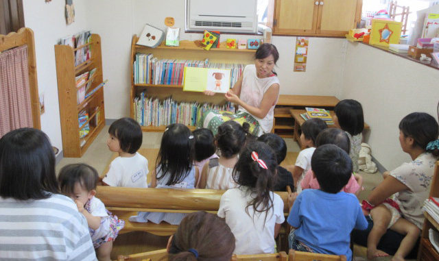 お誕生会の後、恒例になった絵本の読み聞かせを