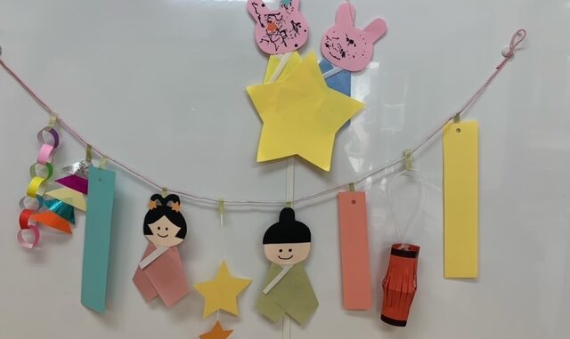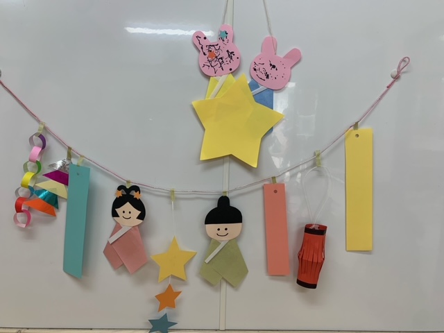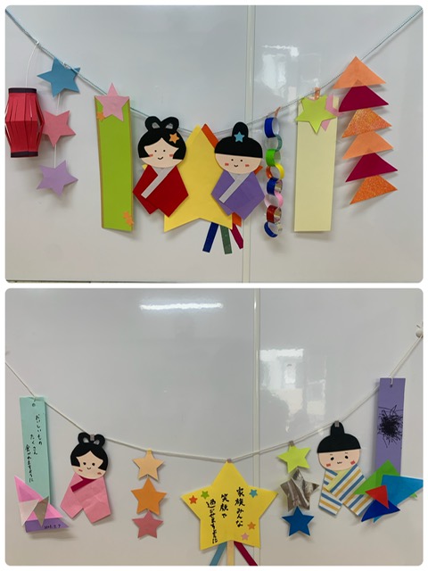 親子で一緒に作ったり、一人で集中して作ったり…。織姫様も、彦星様もそれぞれ個性的で素敵な七夕飾りができました。