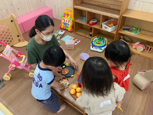 今回は、三島小学校で放課後子ども教室のお手伝いをされている方が来てくださり、ママたちが制作をしている間子供たちと遊んでくれました。