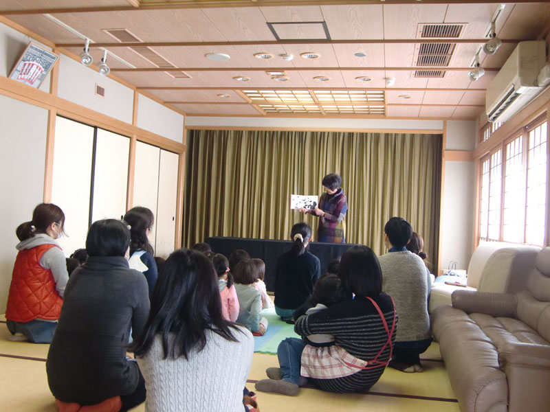 子ども達がよく知っている動物が出てくる絵本に釘付けで歓声も上がっていました。