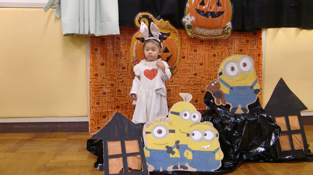 2部に分かれて各回18名づつ「しらゆきひめ」や「かぼちゃ」等、思い思いの格好で、中にはママお手製の小物をつけたミニオン達が会場で撮影を楽しんでくれました。
