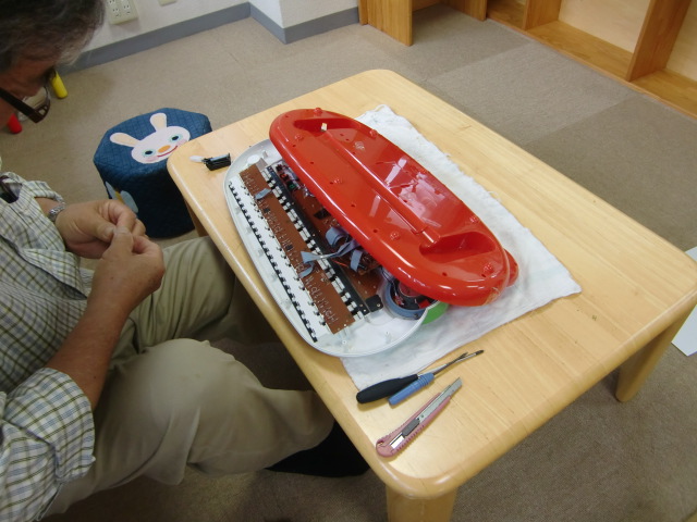 修理できたら、どこをどのように修理したかを説明してもらい、実際に動かしてみて『わあ!!なおった!!』と、感動して喜んでいる子どもの姿を見て誇らしげに微笑んでおられるおじいさんの姿がとても微笑ましかったです。