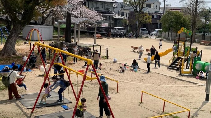 4月5日、「おでかけこえん」で三島小学校のすぐ近くにある「三島公園」通称「うさぎ公園」へ遊びに行きました😊