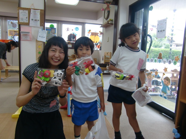 本物のバランやおかずカップを使うことでより嬉しくなるようで、ママたちは可愛らしいお弁当に、子どもたちはお姉さんと遊べてみなさん楽しそうでした*^_^*