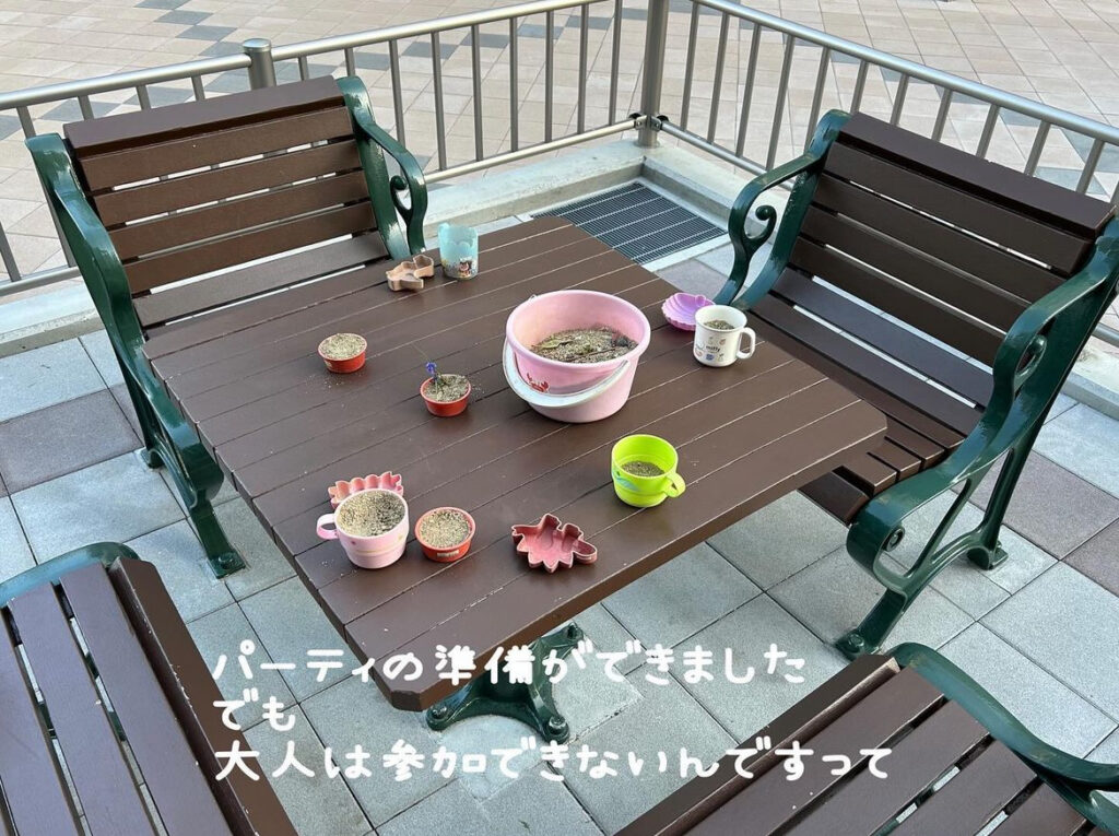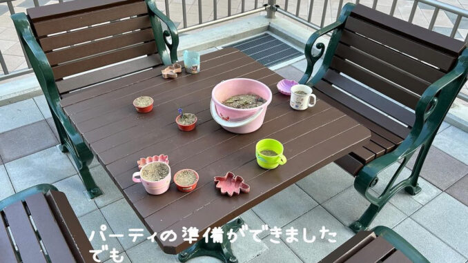 三島丘のURの公園のお砂場は良い憩いの場。赤ちゃんから幼稚園児まで、ひろばで馴染みの親子で賑わっていました。