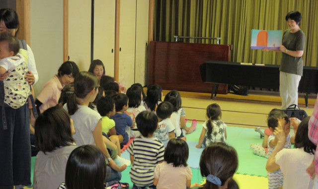 合間に手遊び、クイズ、ハンカチを使った遊びをしてくださり、子どもたちが飽きないように進めてくれました。