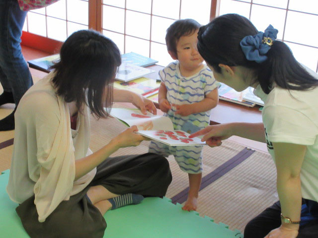 地域の高齢者、先輩ママに来ていただき絵本5冊読んでもらいました。