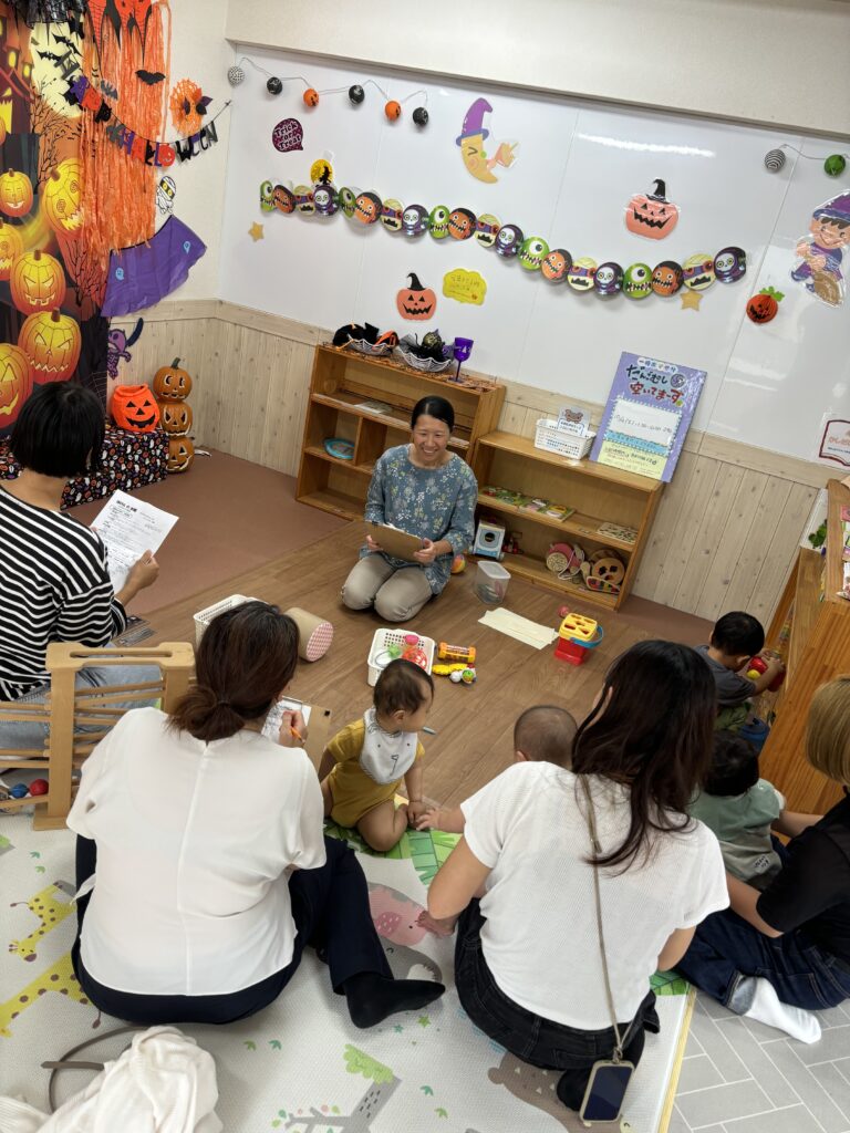 看護師の萩原さんに冬に向けて気をつけてたいお子さんの健康についてお話ししてもらいました。冬の食中毒の事、下着の選び方、ケガややけどの対応など参加者さんの質問に時間いっぱい答えてもらいました。講座の後は個別の質問タイムもありました。