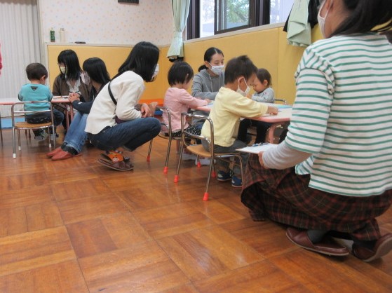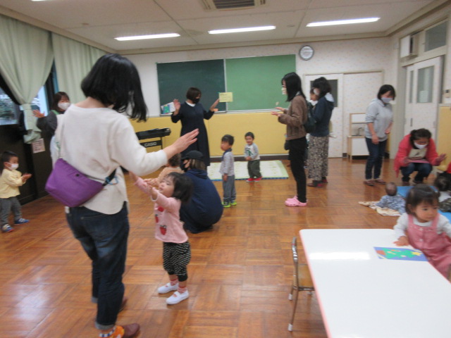 『アヒルのダンス』をお母さんと一緒に踊ったり、パネルシアターを見て、みんなで楽しい時間を過ごしました。 はじめて同年齢のお友達と遊んでみて、おもちゃなどをみんなで一緒に使うという事などはじめての経験がたくさんできました♪と、お母さんたちも喜ばれていました。
