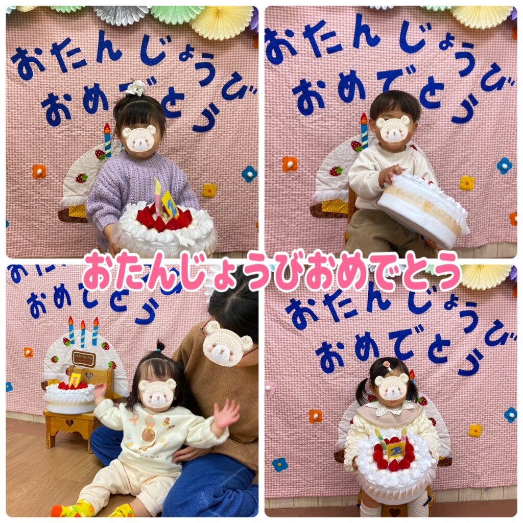13日(金)、12月生まれさんのおたんじょうび会をしました。🎵あわてんぼうのサンタクロースのパネルに合わせて、すずやタンバリンを鳴らして遊びました。最後は🎵ハッピーバースデーの歌でお祝いしましたよ~🎂