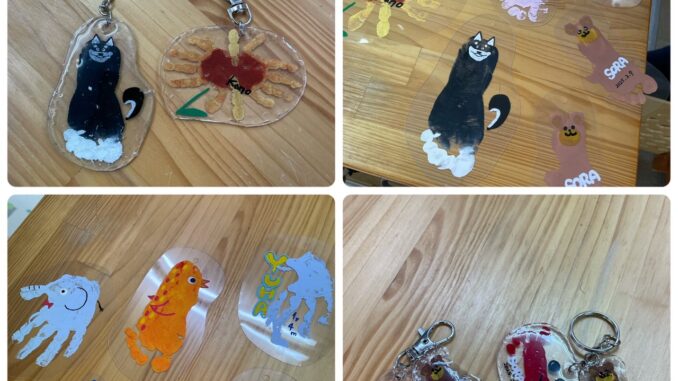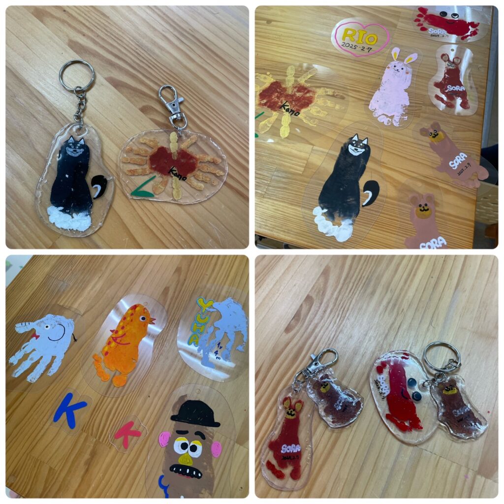 2月「プラバンキーホルダーをつくろう」 2025年2月7日 koenhiroba 地域の人たちと 0 7日(金)、学生ボランティアさんと一緒にプラバンキーホルダー作りをしました。子ども達の手形足形をとって、ママ達皆さん素敵にかわいく💕作っておられました。
