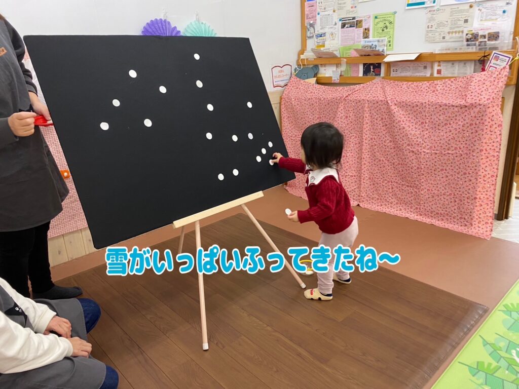 2月「おたんじょうび会」 2025年3月2日 koenhiroba 地域の人たちと 0 21日(金)、2月生まれのお誕生日会をしました。🎵ゆきだるまのチャチャチャに合わせてパネルに雪を降らせたよ~。かわいい親子の雪ダルマも登場して、ハッピーバースデーでお祝いしました。