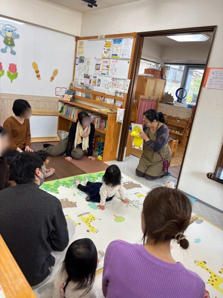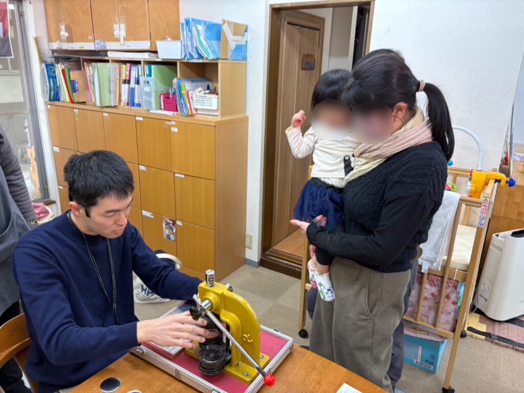 今月は友末さんと缶バッジ作りをしました。お気に入りの写真でバッチかキーホルダーを作った後、久しぶりに会うお友達とおもちゃで遊んで過ごしました。おもちゃで遊んだ後は、ふれあい遊びと絵本の読み聞かせのお楽しみもありました。