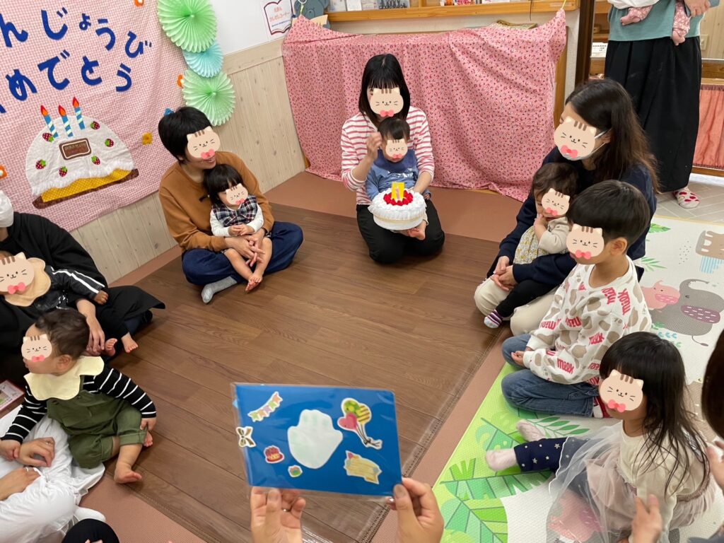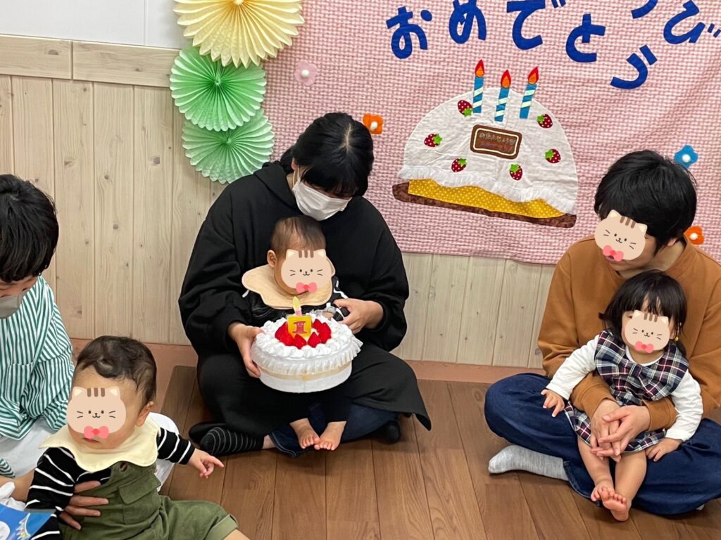 3月28日(金)、3月生まれさんのお誕生日会をしました。エプロンシアターでは動物さんたちがかくれんぼ。パネルのトンネルぐるぐるはみんな楽しそうに見てくれていましたよ。🎵ハッピーバースデーを歌ってみんなでお祝いしました🎂