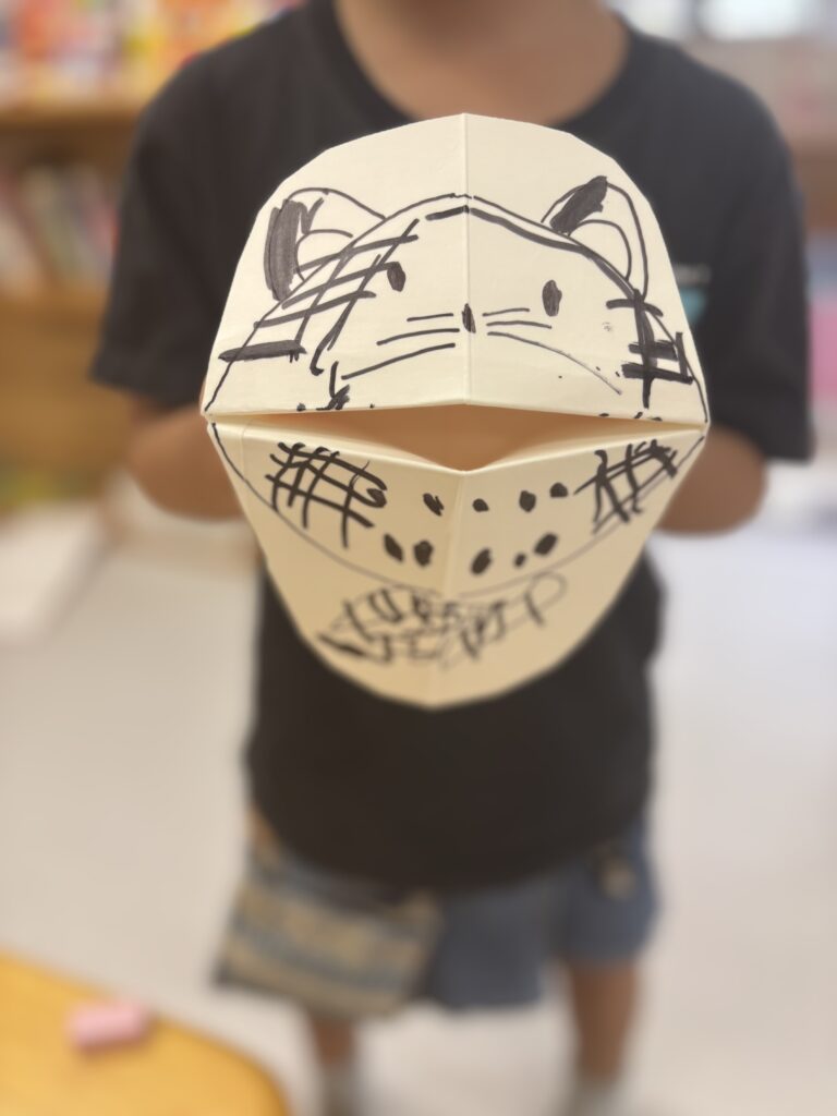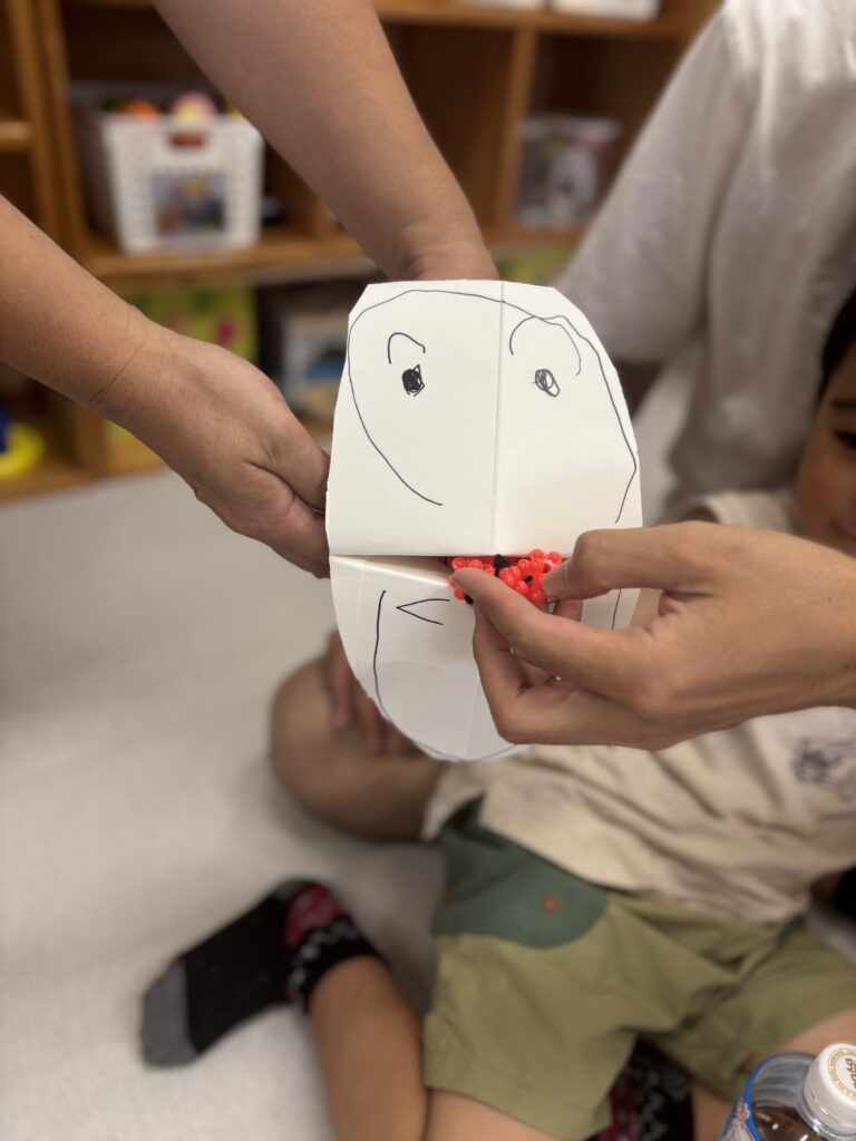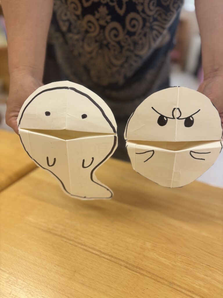 牛乳パックを使って「ぱくぱく人形」と折り紙で作る「凧」を作りました。大きなお子さんは、ぱくぱく人形の顔を描いて、パパにハサミで切ってもらい完成。それぞれ個性的な可愛いお人形になりました。凧もすぐにできる簡単な工作だったので、壊れてもお家で作れるね。