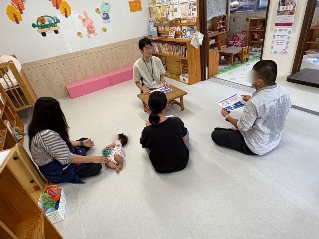 保健師の友末さんに、突然の事故やけがをしてしまった時に最初にする事や判断の仕方、ケガだけで無く病気の時や災害時の緊急連絡先、利用したら便利なアプリを紹介して貰った。こんな時はどうしたら良いか?をスタッフ交えて、子育て中のびっくりエピソードなども交えながら話し合いました。