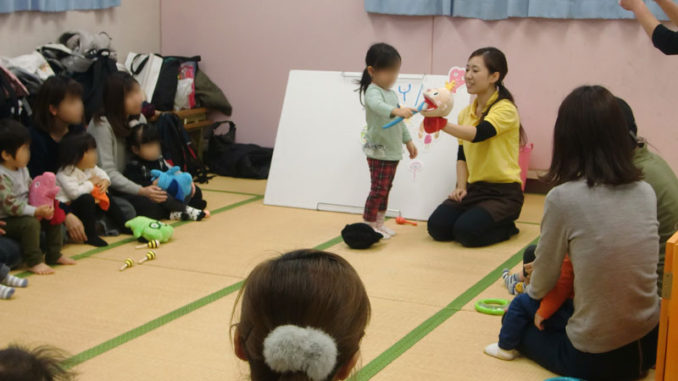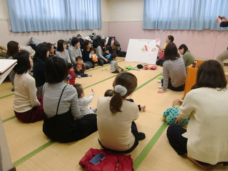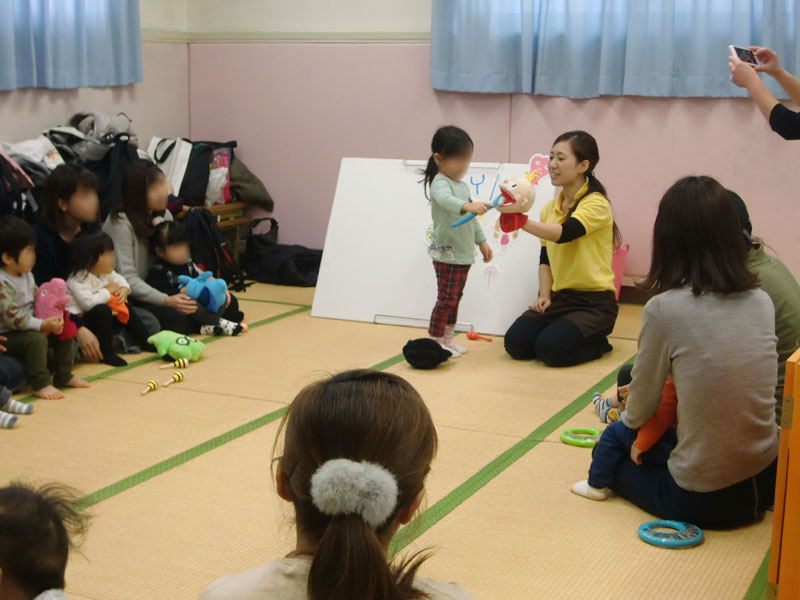 音楽に合わせてマラカスやすずで遊んだ後、パネルシアターを見せてもらいました。
