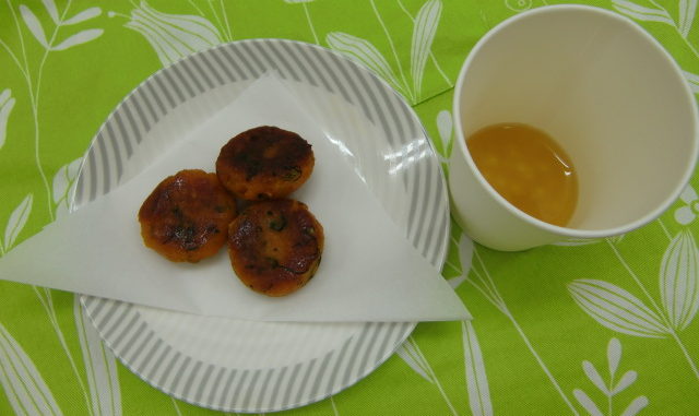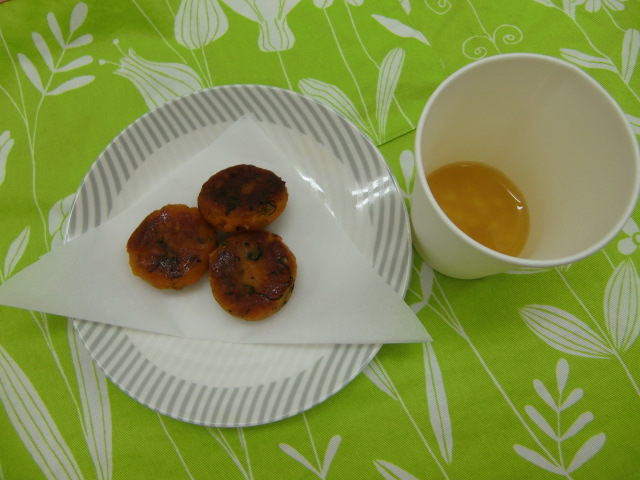 かぼちゃ団子とお出汁の試食もあり、砂糖を加えなくても甘くておいしいと評判でした。
