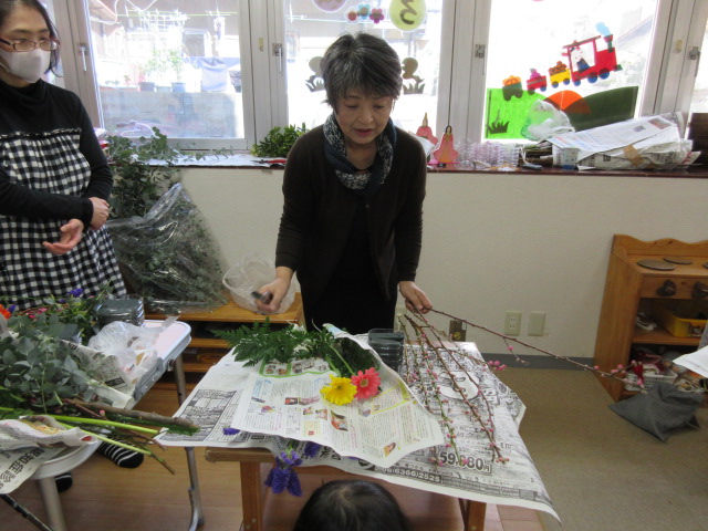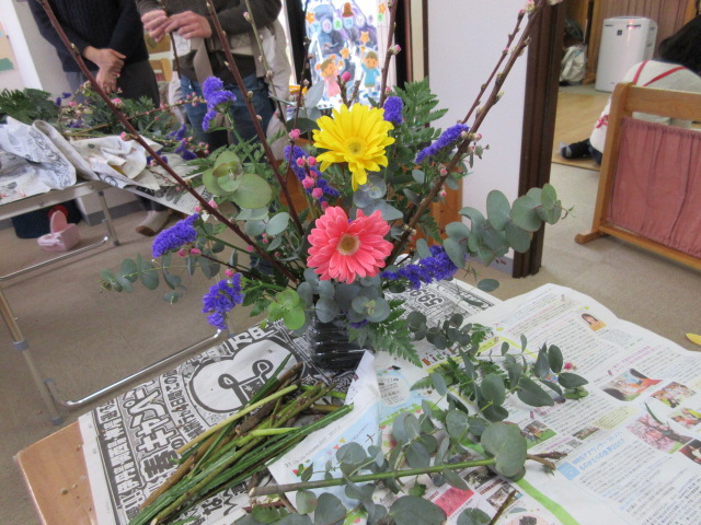 泣く子は おんぶしながらの 受講でしたが なかなか日頃生花をすることも