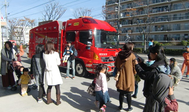 小春日和の土曜日の午前中、茨木消防署西河原分署へ見学に行きました。