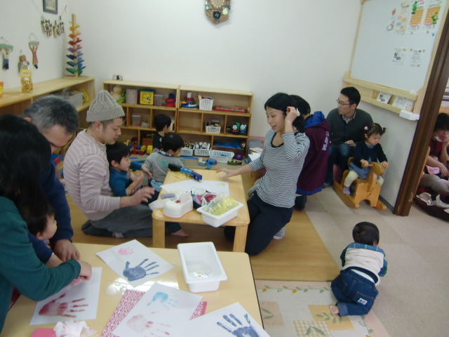 3月の講座「大きくなったね手形をとろう!」 2016年3月13日 koenhiroba 講座 0 毎年 パパの日の取り組みとしていた「大きくなったね手形をとろう!」を土曜日にしてみました。 例年通り パパさんたちも沢山参加してくれて素敵な作品が出来上がりましたよ。