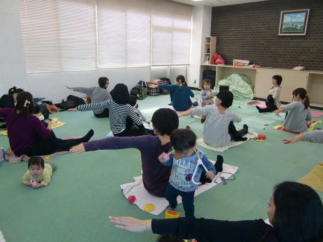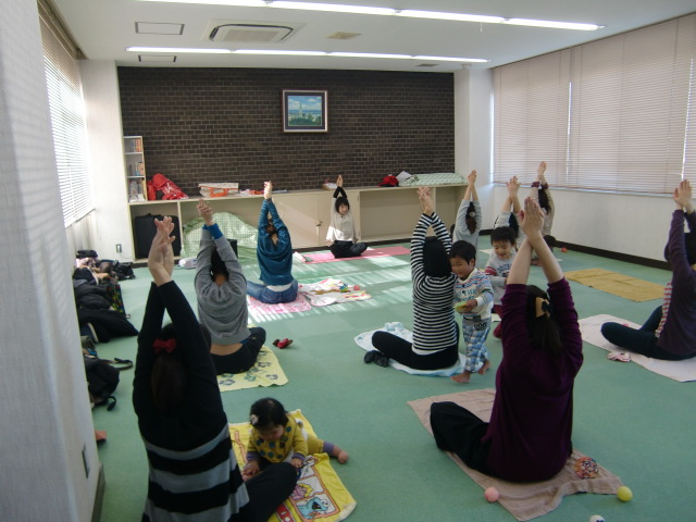 時間があっという間でした。 子どもたちもおもちゃで遊びながらお母さんのいろんなポーズに興味深々、日頃のストレスや肩こり腰痛にも効果があったようです。